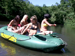 Lesbian foursome in outdoors with handsome best friends. HD