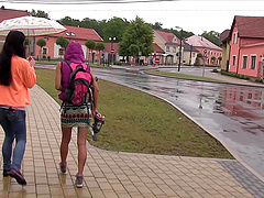 Outoor lesbian kissing and pussy licking with two amateur girls
